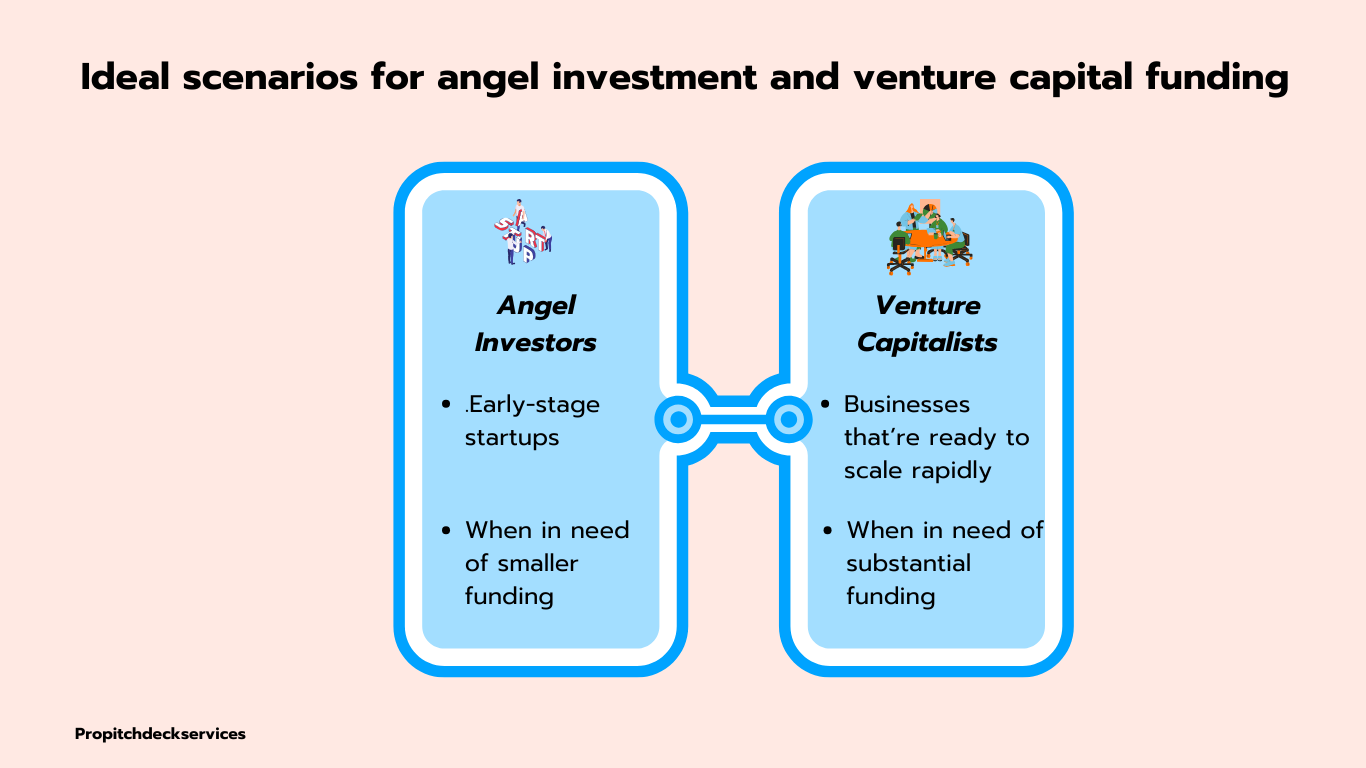 Angel investors are ideal for early-stage startups still refining their business model, developing products, or looking to establish an initial customer base. If your business needs flexible, smaller funding, angel investors can provide capital without demanding too much control over the company.