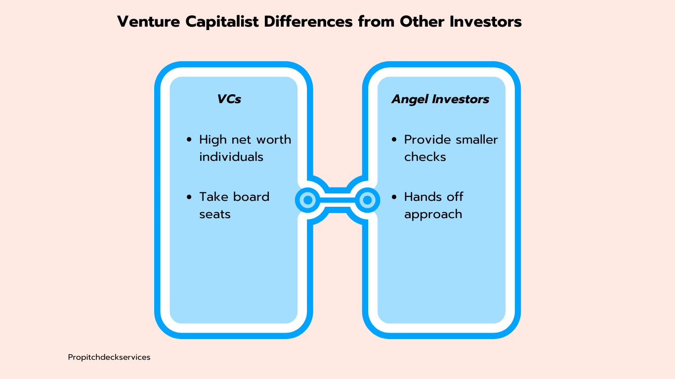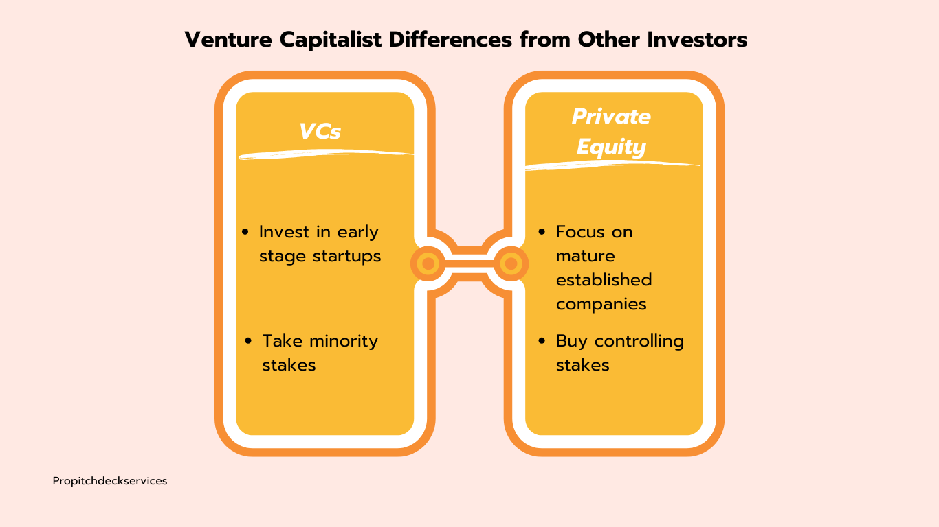 Venture capitalists follow a structured investment process to identify high-growth startups, support them, and eventually exit profitably through an IPO or acquisition. However, they are just one type of investor in the startup ecosystem. Entrepreneurs often seek funding from angel investors, private equity firms, or traditional lenders, but these investors operate very differently from VCs.