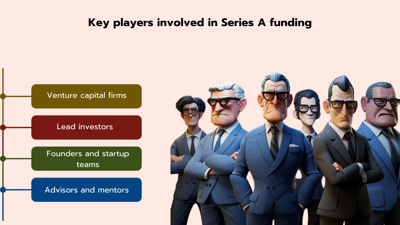 During series A funding, funding advisors and mentors give strategic advice, offer industry connections, and help in fundraising. Their roles include: