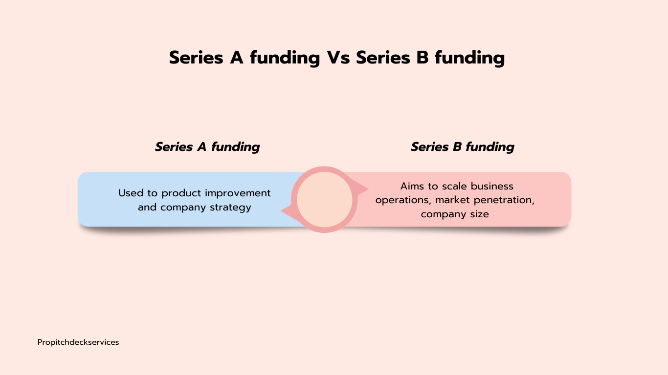 When funding a startup, series A funding allows money to improve the startup item and company strategy. Series B funding aims to scale business operations, market penetration, and company size1.