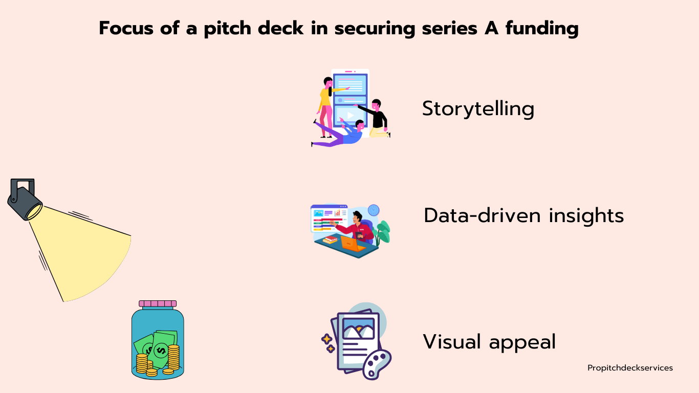 A well-structured pitch deck is a critical tool for securing Series A funding. The startup's vision, opportunity, and economic viability must be communicated adequately and, at the same time, keep the investors guessing. Essential components include: