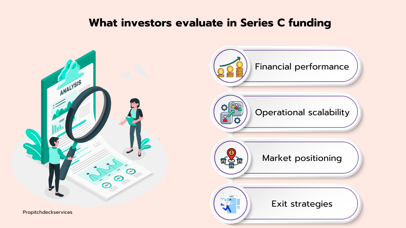 Investors evaluate key performance indicators (KPIs) to measure the impact of Series C funding, including: