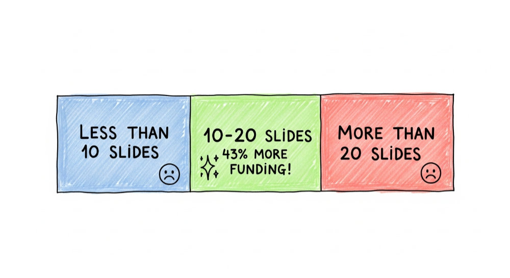 This empirical data establishes the 10 to 20 slide range as the practical norm across successful startup fundraising efforts.