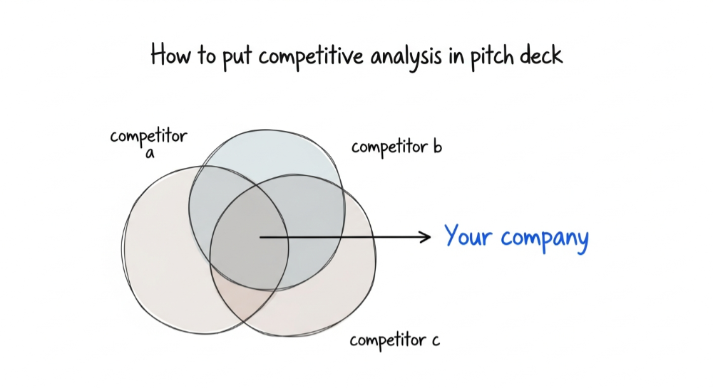 Competitive analysis in a pitch deck is a visual comparison that shows how your company positions against other players solving the same problem. The analysis demonstrates your understanding of the market landscape and convinces investors that you can win market share.