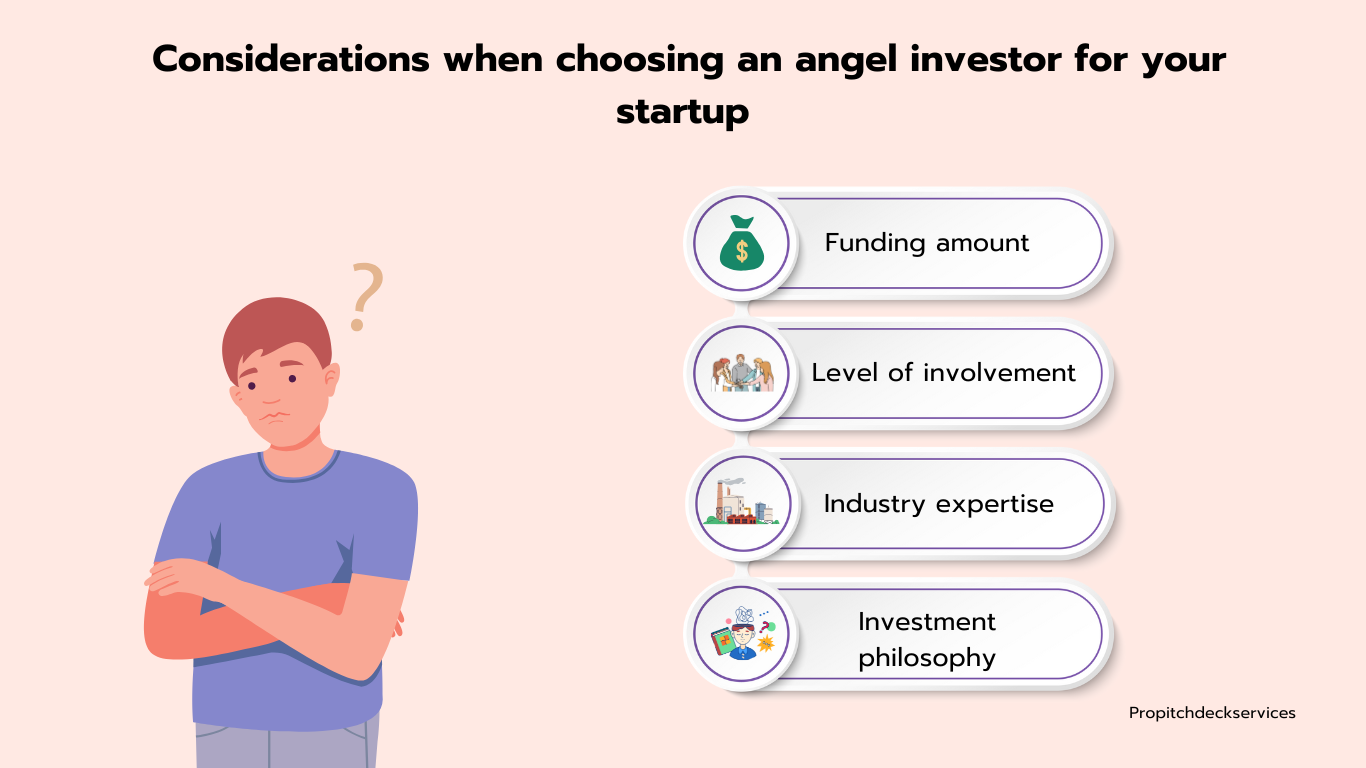 Evaluating the right angel investor depends on funding needs, investor involvement, and strategic alignment11. Entrepreneurs should assess whether an investor aligns with their startup’s stage, long-term vision, and strategic needs. Startups should consider:
