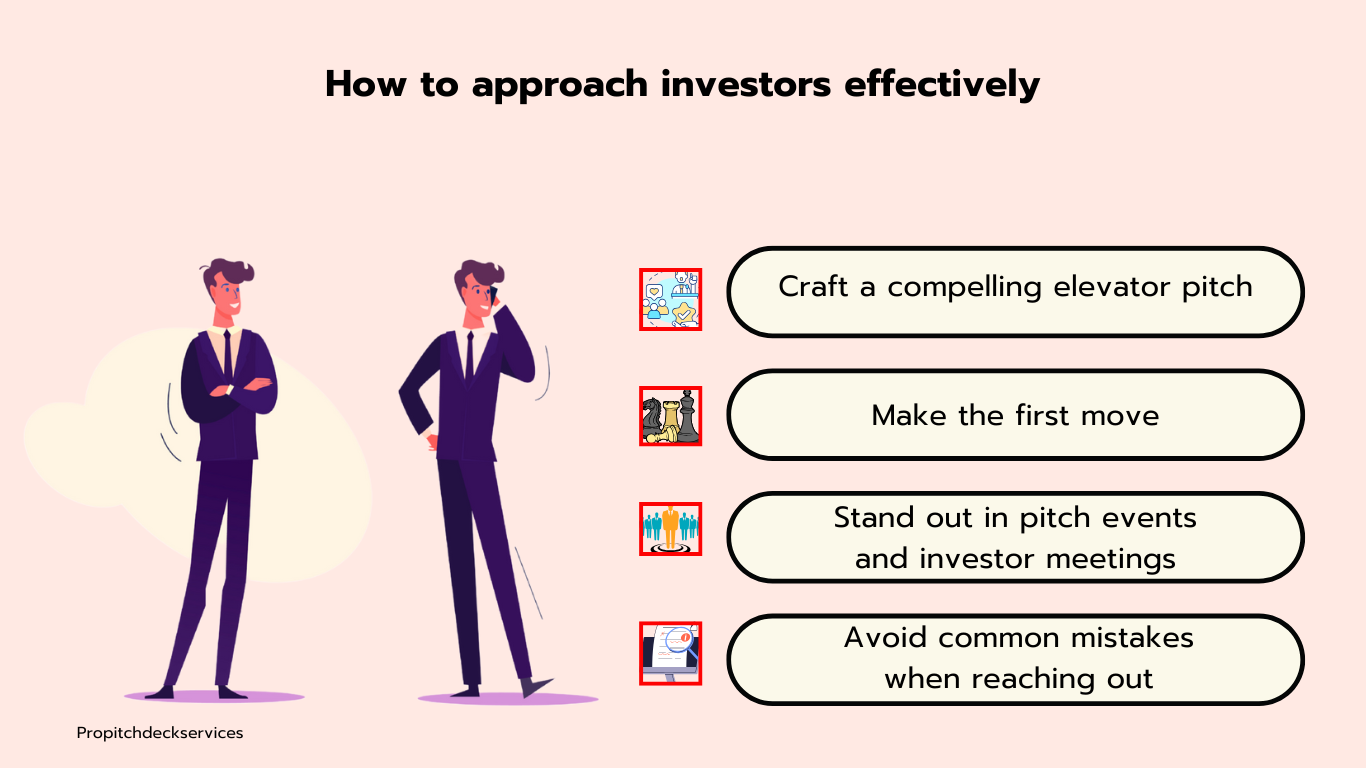Making the first move can be intimidating, you can use cold mail pitching, LinkedIn, or mutual connections. Once you reach out, your message should stand out. To stand out, ensure your message is personalized and relevant to your audience2. Avoid generic outreach, as investors appreciate it when startup founders take the time to understand their interests and align their pitch with those interests.