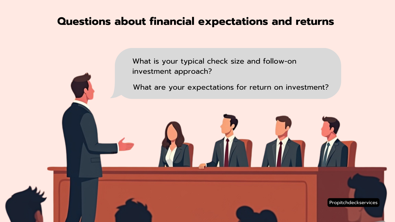 Investors differ in their investments and whether they provide follow-on funding in future rounds. Knowing if they have the financial scope and commitment to back your startup beyond the investment made during the first season is essential. This question also answers whether they take care of additional funding through capital or if founders will have to find other investors in the later round.