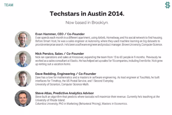 - Engaging context and personality: Mentioning "Techstars in Austin 2014" and their current Brooklyn base creates a relatable narrative, while Evan’s Airbnb story adds a personal touch, making the team more memorable.