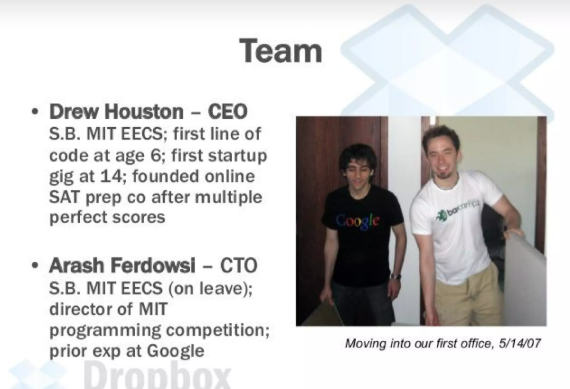 - Relevant experience: The slide here introduces both leaders' track records of technological mastery and business development, which support Dropbox's mission and vision.