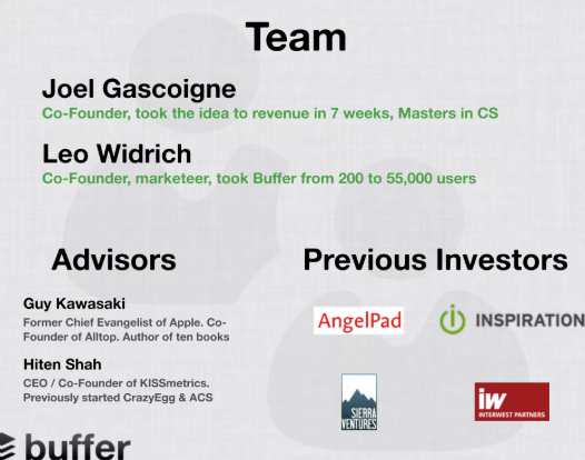 For example, Buffer's founders, Joel Gascoigne, and Leo Widrich demonstrate strong domain expertise through their entrepreneurial achievements.