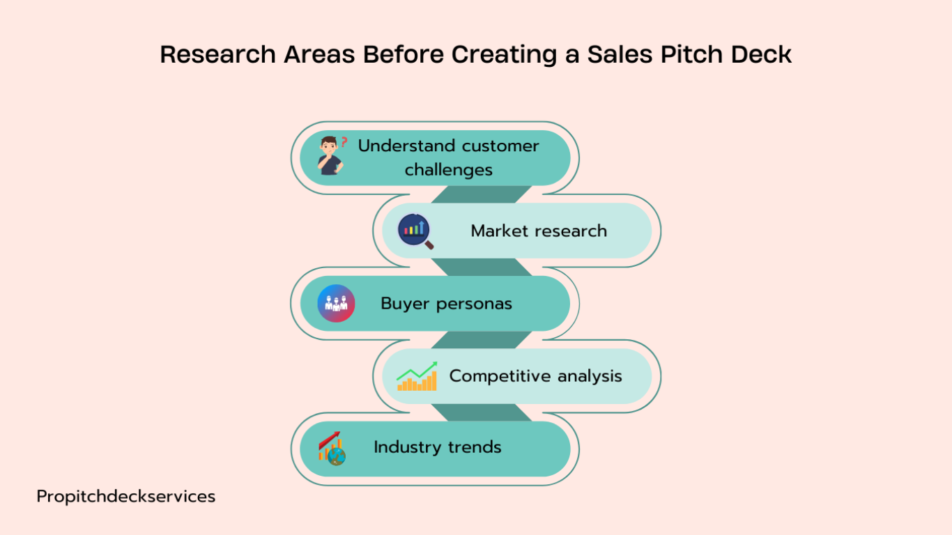 Thorough research ensures that your sales pitch deck resonates with your audience and addresses their pressing needs. It also ensures that the deck is a powerful tool that resonates with your audience, builds credibility, and drives conversions.