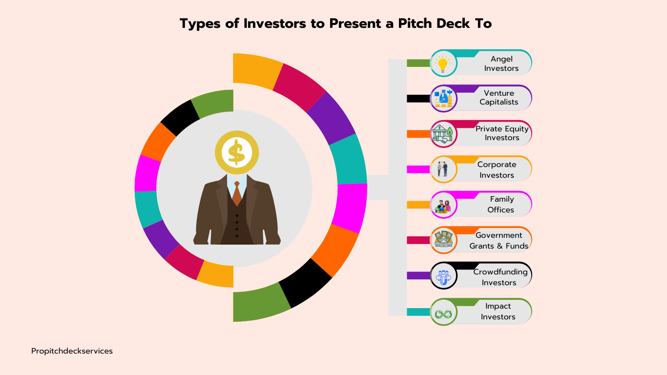 Business pitches targeted to investors demand specific preparation because different investor groups possess distinct funding requirements, risk acceptances, and funding preferences. The compatibility between your pitch deck and investor expectations will significantly bolster your opportunity to win funding when addressing VCs, private equity firms, corporate investors, and impact investors.